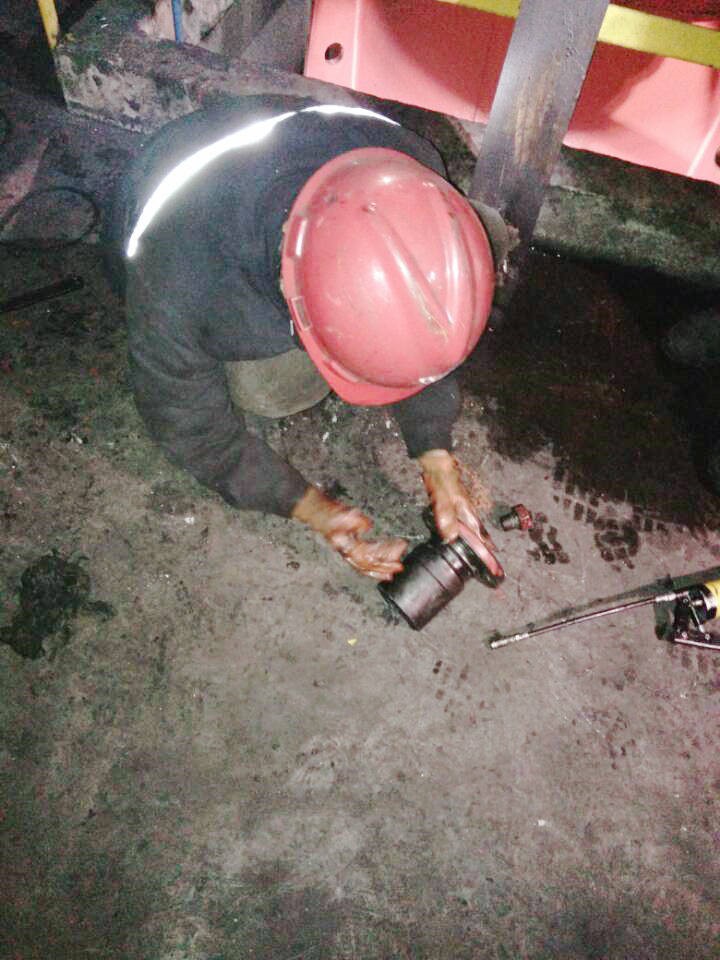 哈尔乌素压滤车间有三套系统,一直都是两套运行,一套检修维护。为了使春节回家休班的人员过一个放心春节,我们利用春节前的最后一次停车机会,组织人员细心检查每一台设备的运行情况。检查中发现326C排料装置上闸板托辊有两个不转,于是组织人员进行拆卸,拆卸前办理停电票及工作票,对液压站停电上锁验电,拆下托辊进行清洗打磨,疏通油眼,经过三个小时的努力,将托辊回装后投入运行。