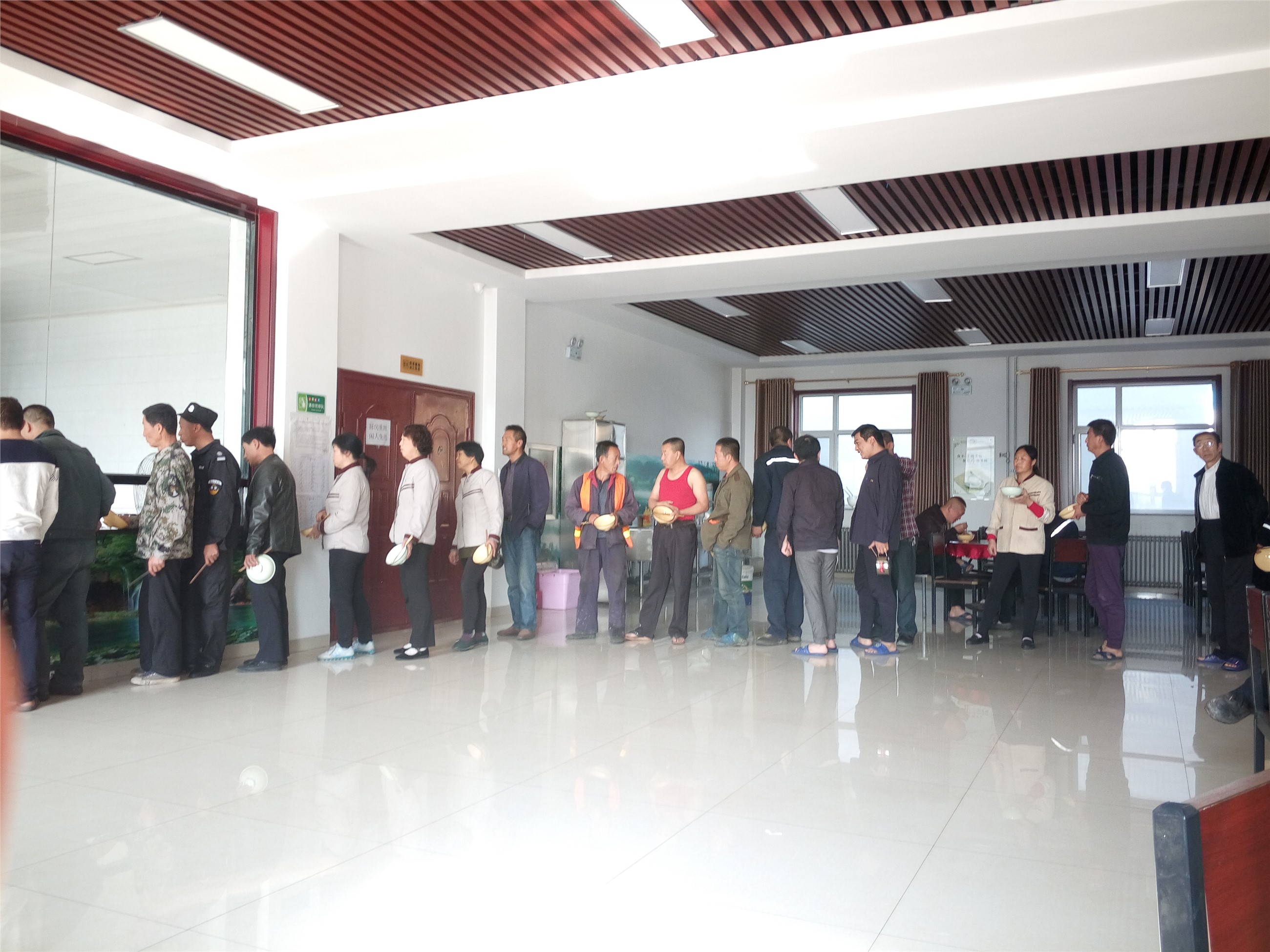 餐饮是文化,窗口现文明。兴县运行项目部自开始运行以来,人员在不断地变化,同时也在不断地增加,每天吃饭的人数从最初的50多人增加到100多人。由于一个食堂接纳不了那么多人吃饭,项目部将食堂分成了两个。食堂环境越来越好,伙食水平越来越高,人员素质也逐渐提高,以前不分先后随意打饭的现象不存在了,职工们都自觉在打饭窗口排起了队。用餐的时间里,整个餐厅秩序井然,闪现着文明的光芒。排队事虽小,相互礼让体现的却是中华民族的传统美德。