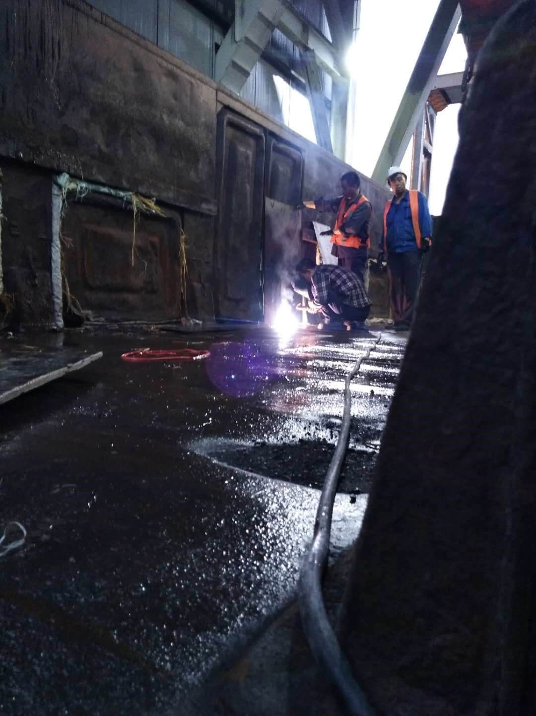 近期,铁路、新鑫盛源公司和我公司兴县项目部正在积极筹备修缮火车皮工作。7月15日,一列火车进站后,绑车门人员经检查发现,其中一节车皮需要铁路技术人员确认是否排空或者修缮。铁路技术人员确认火车皮能够修缮后,我项目部人员立即着手准备修缮火车皮的工器具,待火车带到修缮点后,我方人员经过半小时的维修焊接,将火车皮修缮完毕。铁路技术人员确认修缮合格可以装车,避免了空车皮驶出兴县北站。