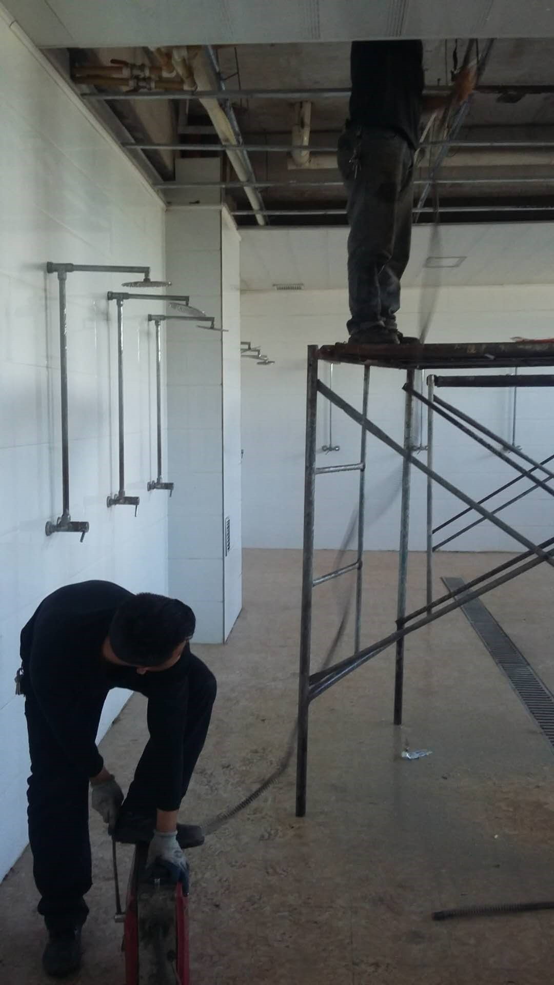 一日,麻家梁项目部公寓二楼卫生间的下水堵了,六个小便斗的落水从地漏喷泉一样地往出返臭水。锅炉房机修组在人员极度紧张(有请假、离职、休班、外派人员)的情况下,抽调班长孙文回项目部与供热三组罗国文积极配合解决问题。司机老杨现场拉回脚手架两副,经理从甲方供热科借回管道疏通机一台,加上项目部自有的一台小型疏通机,两台机器一起上阵。主任放弃午休时间从豪德购回伸缩节、立检口、气管和副龙骨等配件。在维修现场,125切割机、350管钳、24开口梅花扳手、皮吸、手电钻、铆枪、鹰嘴钳、壁纸刀、锯弓等工具全部派上用场。老孙和小罗拆开一楼男澡堂顶子对六路蹲便、六路小便和一趟地漏逐路进行检查,南北方向六米疏通,墙角从三楼下来的主竖管道六米疏通。长年累月,一楼顶北墙东西横向的50PVC管道淤积深厚,难怪火碱加开水都弄不开。老孙和小罗刨开管道,恶臭扑鼻,楼道路人掩鼻而过。老孙和小罗好一通大干,身上溅了好多屎尿,可他们却顾不得脏顾不得累了,一心只想着早点找到毛病所在,早点排除故障把活儿弄好。他们长时间登高弯腰地作业难免腰酸背痛,加之恶劣环境,也只能含泪强忍,缓缓劲换换气再继续干,多次清扫污物甚至废掉了一把拖布。功夫不负有心人,所有管道终于清理疏通完毕,老孙和小罗又将撤下来的22块四米长PVC吊顶板清洗好再恢复安装,将两个顶灯和一个换气扇也同样恢复安装,还给工人们一个清新舒适的环境。