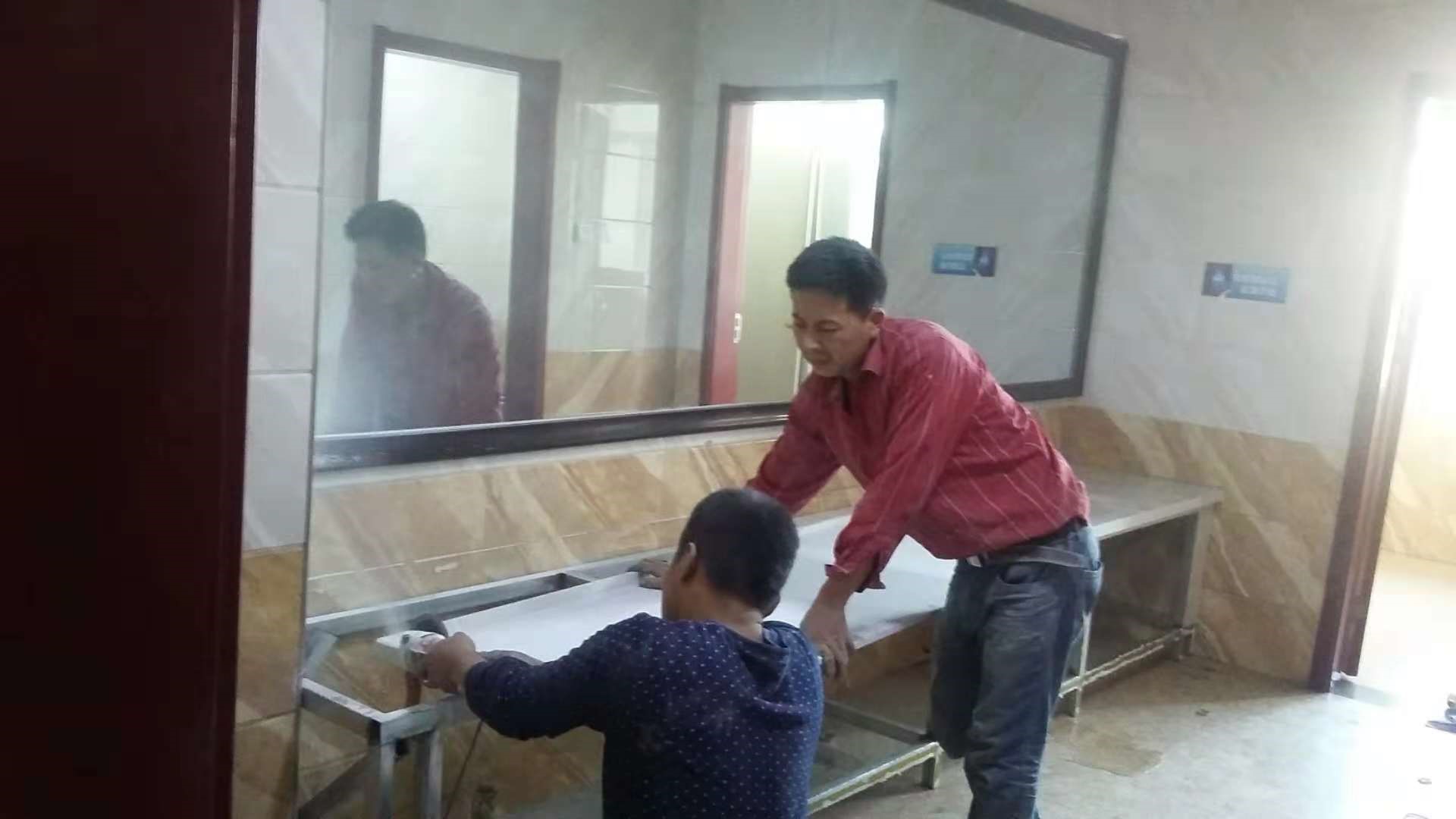 近日,麻家梁运营项目部办公楼洗漱间面盆台面沉陷,部分橱柜门变形起皮,运营管理部对公寓管理员进行了批评督促。项目部立即把受潮腐蚀变形的木结构框架全部拆除,使用30*40的方管作支撑框架,框架全长3.7米,内部还加装了斜撑。另外,项目部还将石英石台面全部进行更换,更换钢化橱柜门24个,更换搪瓷面盆3个,装饰了晶体板防水面层。经过一整天的修整,一、二、三层洗漱间变得整洁又漂亮。