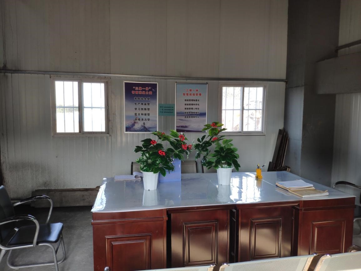 长子项目部充分利用空间,在栈桥底下新建了彩板房,这里不仅配有办公桌椅,还安装了照明灯,晚上也可以使用。职工还利用废旧材料自制了笔筒,很实用。彩板房墙上挂有安全标语、交接班和班前会制度,角落还有签到机,为了更加美观,办公桌上还摆放了装饰品。整个室内布局合理,紧凑整洁,简单而又温馨,为广大职工提供了工作和学习的场所。