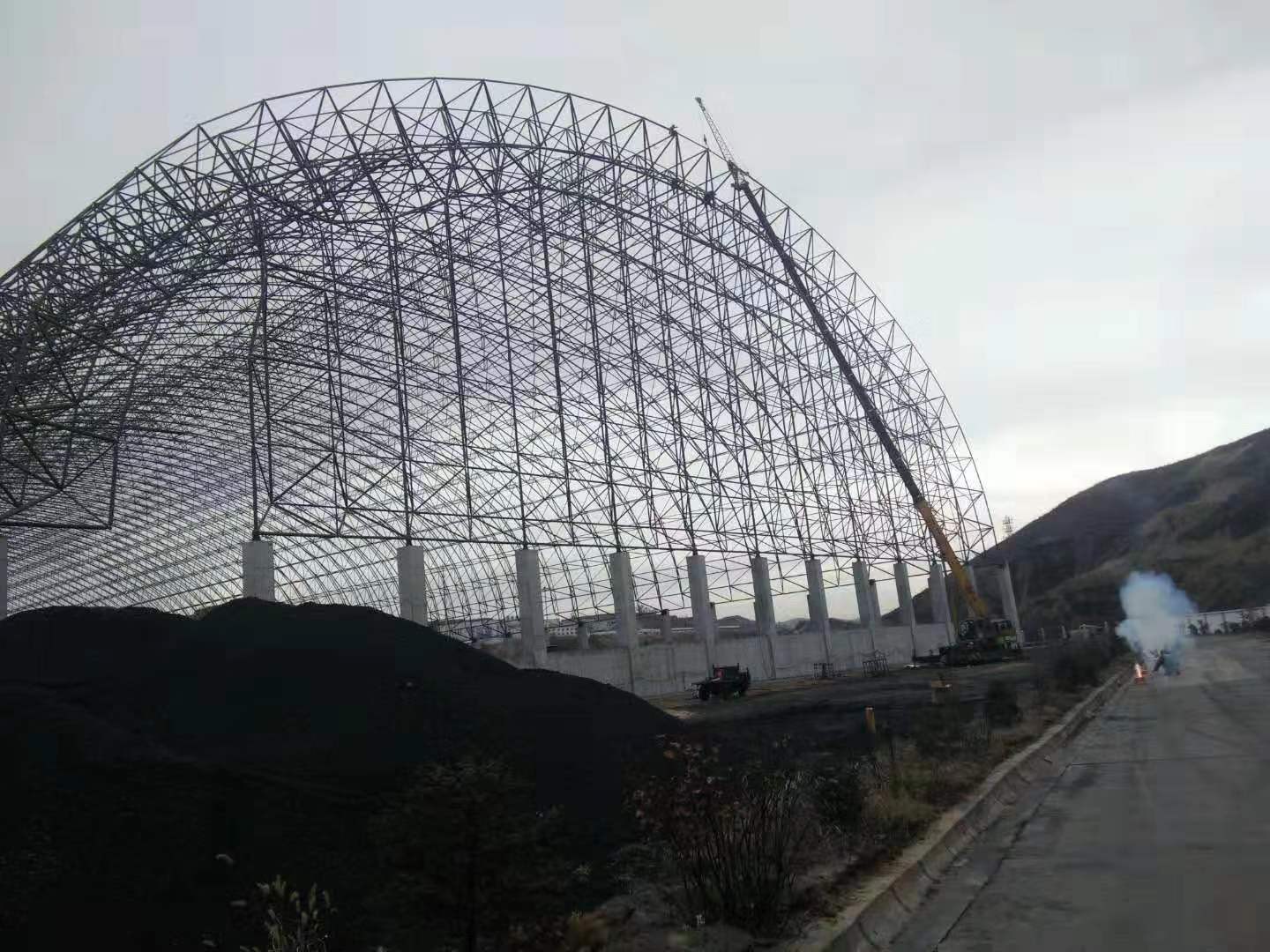 11月16日14时14分,随着最后一组钢构件的安装到位,伴随着热烈喜庆的礼炮声,兴县蔡家崖集运站储煤棚屋顶的钢结构网球架顺利完工,这标志着我们顺利拿下储煤棚工程最重要的一段任务,也为钢结构后续的檩条、钢瓦安装奠定了坚实的基础。