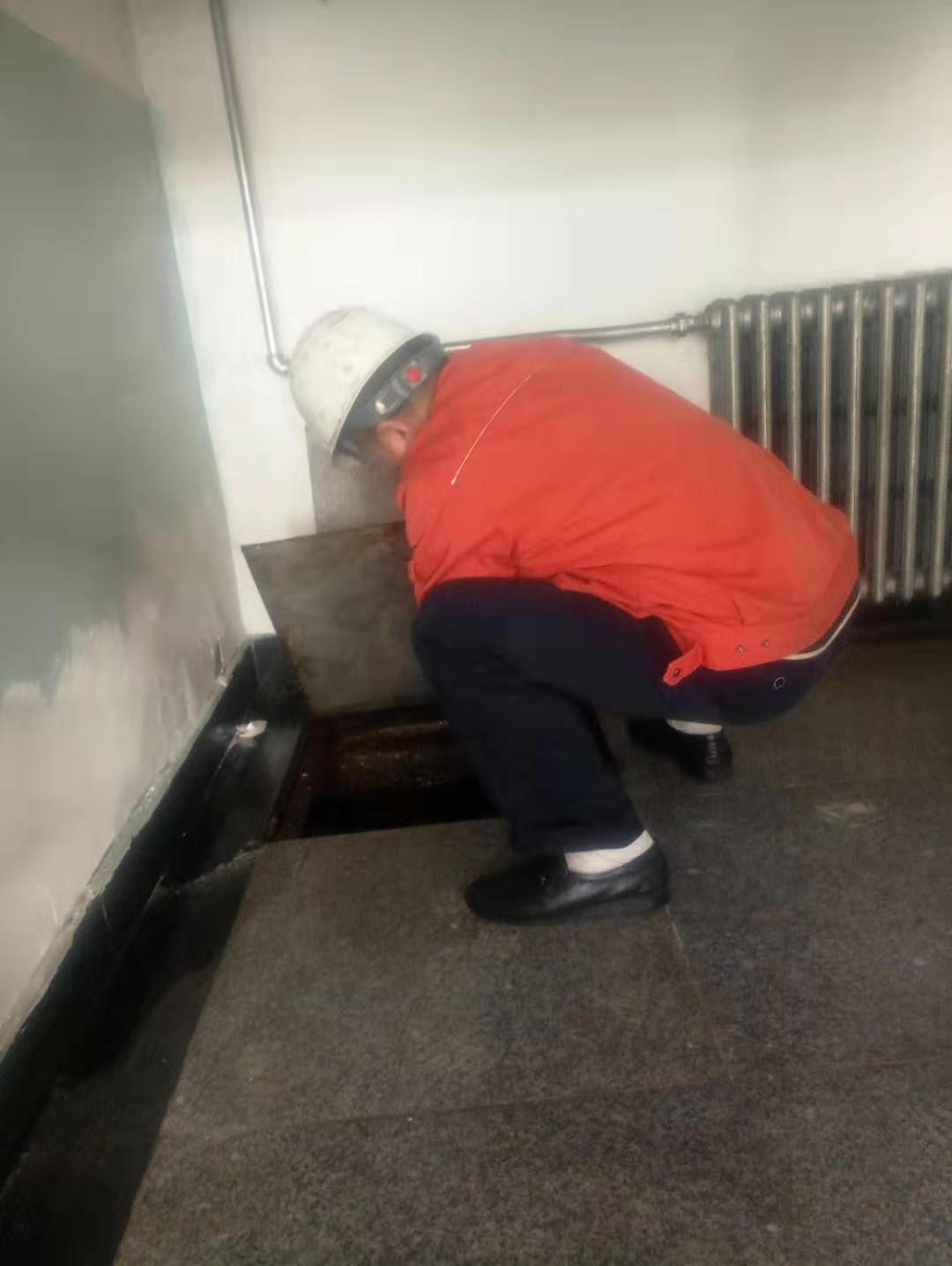 图为冯斌准备下地沟检查暖气管网