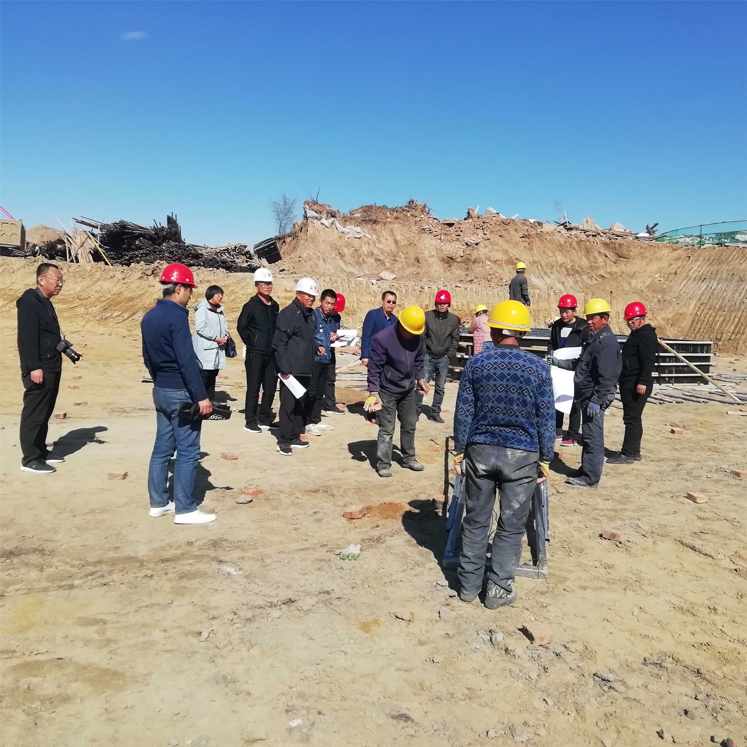 10月14日上午九点,由建设单位组织,建设、设计、勘察、施工、监理及施工现场相关负责人对医院地库进行地基验槽,在此过程中项目经理李志敏对工程的概况及开挖过程中的土质及深度简单的做了介绍。