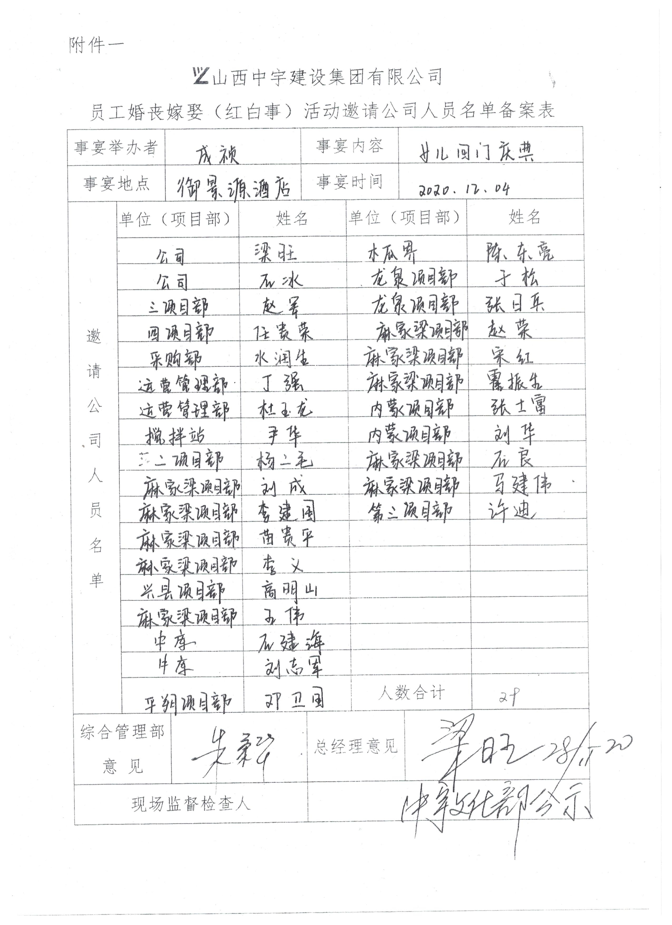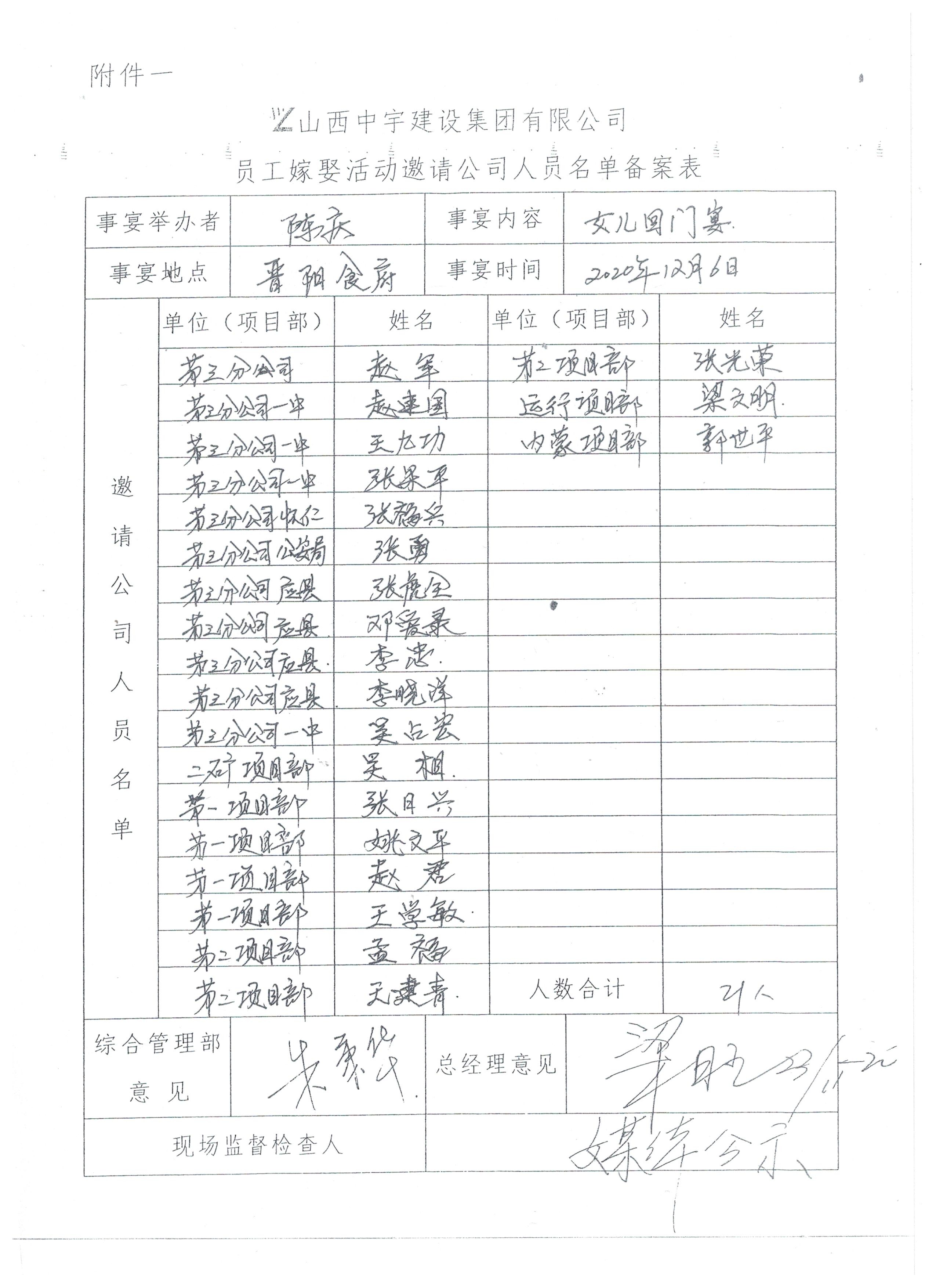 员工婚嫁活动邀请公司人员名单备案表公示