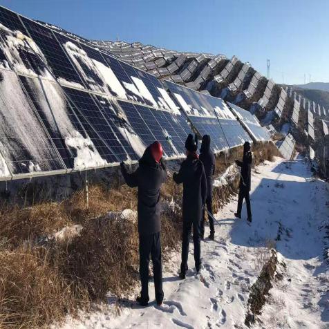 俗话说:瑞雪兆丰年,大雪除了对农民来年的庄稼有好处外,对咱电站光伏板来说也是天然的清洁工。因为秋冬季沙尘多,导致光伏组件上有尘土覆盖,从而影响了发电量。下雪后,雪覆盖在组件上能把尘土黏住,随着组件开始发电、发热,上面的雪也整块整块的往下滑,此时的组件也被清洗的一尘不染,从而提高了发电效率。借着瑞雪的好兆头,相信明年的电站仍会硕果累累。
