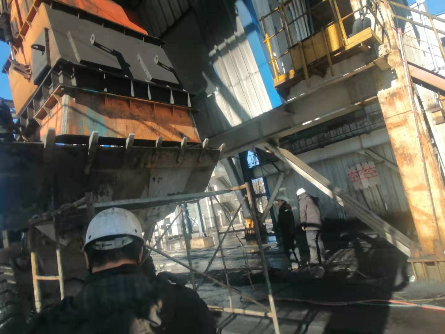 近日,龙泉运营项目部装车站集装箱与敞篷车两用溜槽制作、安装完成。原设计方案使用液压系统,经过厂家调研、测量,发现改造起来有很大困难,具体来说:一是液压油缸安装于溜槽上面,溜槽与主钢梁之间空间小,无法放置油缸,只能切割主钢梁,这样就会破坏结构;二是装车溜槽往下放150毫米后,与27.5KV高压线的安全距离无法得到保障。最后,矿方领导决定,先改溜槽。说干就干,大家顶着严寒,用不到三天时间就完成了溜槽的制造、安装,改造效率与最终效果得到了矿方领导的高度评价。