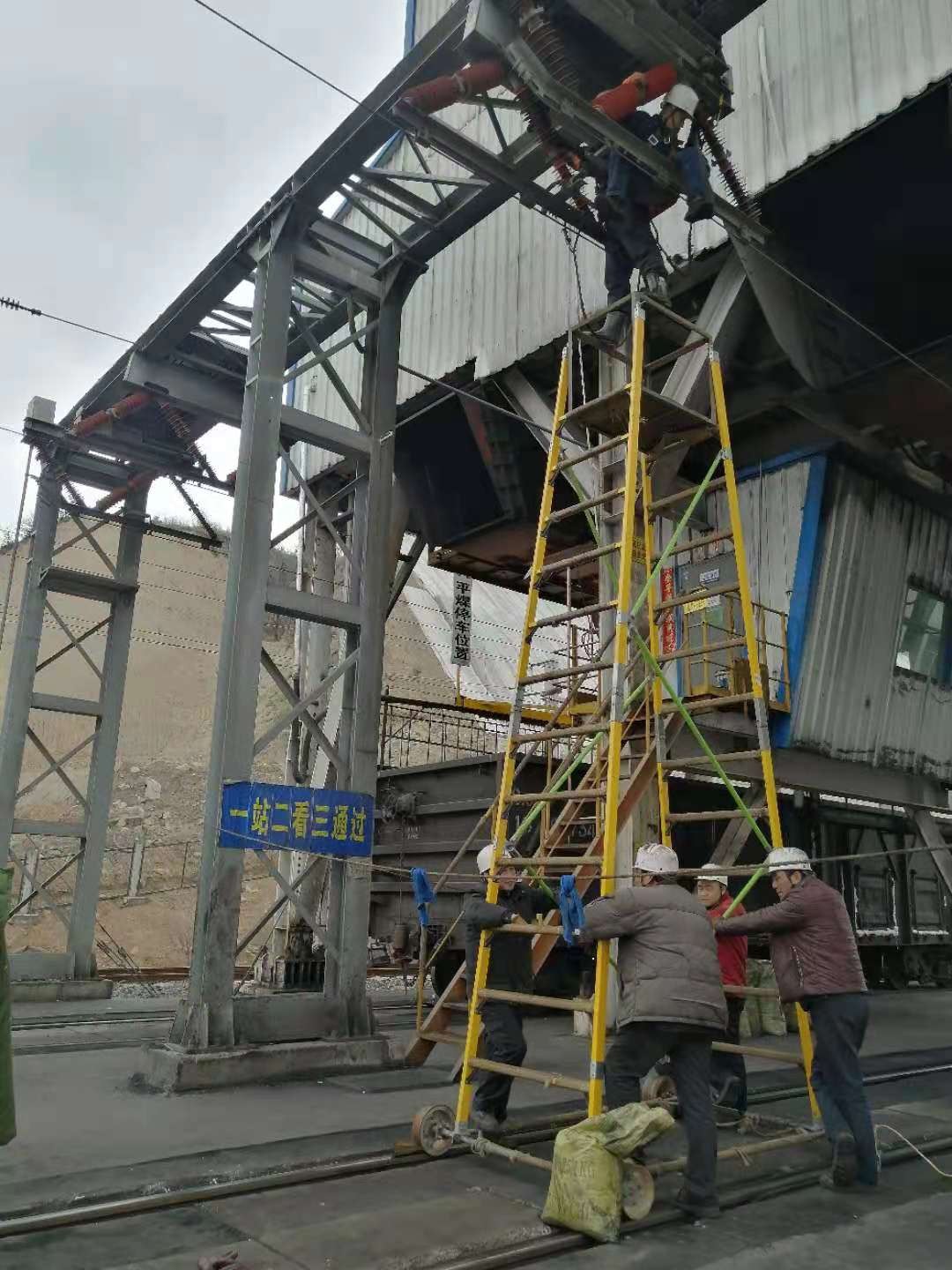 4月24日,龙泉项目部对四道装车线高压移动网进行检修。虽然他来项目部只有五天,但停电、验电、上锁、挂接地线、挂牌等一系列操作像个老员工一样。全程参与的我,看在眼里,记在心里。挂接地线前,他看到接地绝缘杆有煤尘,便用酒精擦拭,以保证绝缘杆的可靠性;接地前,为了保证导电良好,他进行了接地扁钢除锈工作……通过简单的工作,我看到了这位老电工的专业素养。一切准备就绪,像之前检修五道移动网一样,我亲自用手“验电”,确定安全后,按照检修前的安排,班长和副班长准备爬上高空检修移动网。就在这时,一个陌生的声音说:“我上吧,我是电工。”原来是彭崇尚主动请缨,要上去检修。我劝他说:“你岁数大了,让年轻人上吧!你在下面配合配合就行了。”他说:“我精神好着呢,不比年轻人差。”说着他迅速系好安全带,麻利地爬上梯子,不一会儿就完成了第一组的检修。第二组时,他还要上,我及时地制止了他,“老彭,你休息一会儿,给年轻人点机会,好吗?”他笑着说:“好吧。”让他休息,可他在下面也不“安分”,一会儿洗抹布,一会儿 “指导”上面工作,就是闲不住。