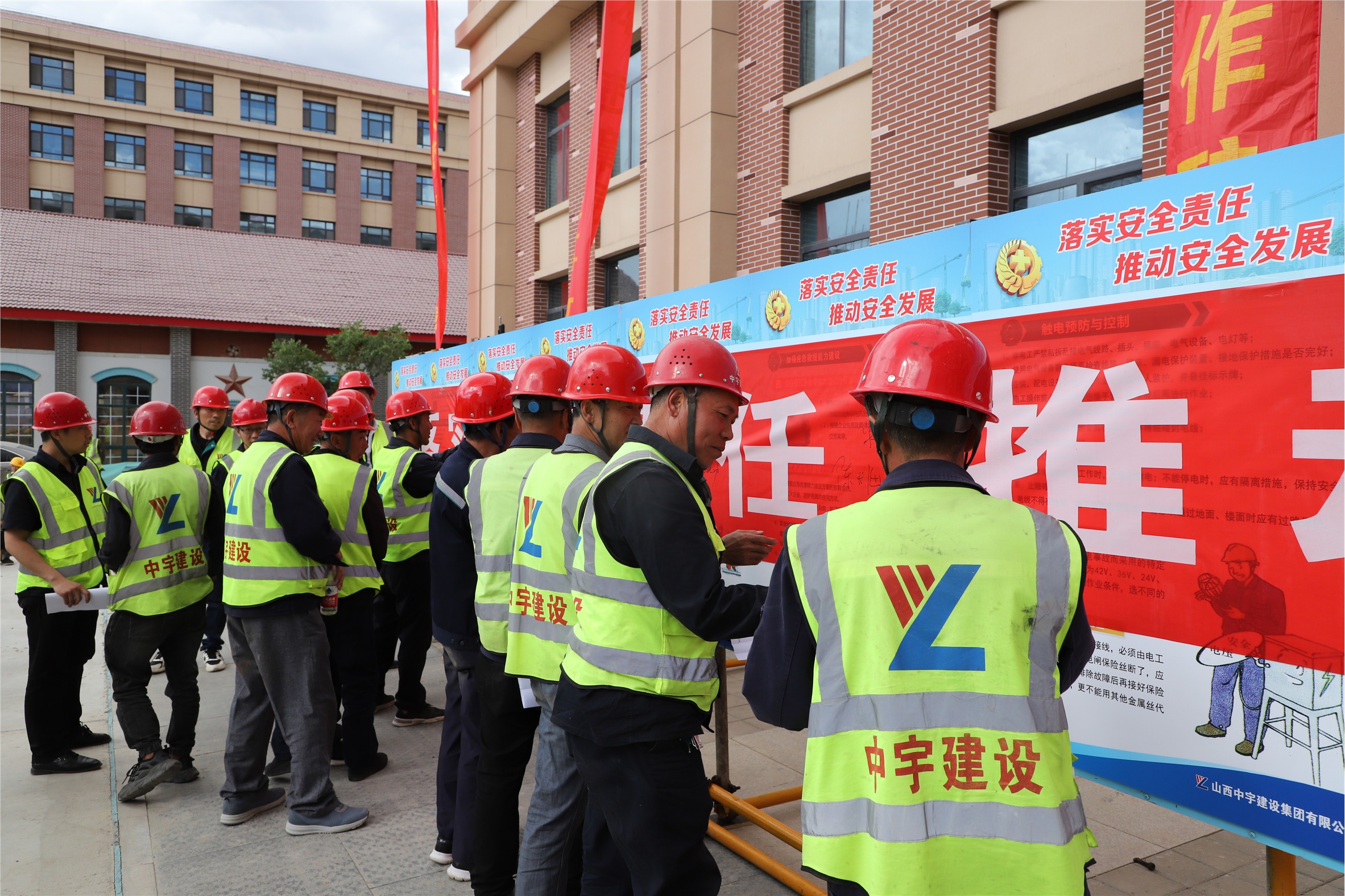 6月4日下午3点,中宇集团第三工程分公司全体员工及劳务作业人员在城区一中改扩建工地隆重召开了“安全生产月”活动启动仪式。大会邀请了城区安监站罗耀东,建设单位城区一中副校长齐凤福、总工王伟,山西华太工程管理咨询有限公司总监张晶,中宇集团公司副总王鹏、质安部部长宿士敏、第三分公司经理赵军等相关领导。本次大会由城区一中改扩建项目部经理田晓雷主持,议程如下:1.公司质安部宿士敏致安全生产月活动仪式开幕词 ;2.城区一中改扩建项目技术负责人刘文海宣读本次安全生产月活动方案; 3.三分公司朔州项目部经理李树鹏、怀仁项目部经理邢顺义、应县项目部经理李晓阳、城区一中改扩建项目部经理田晓雷分别作了安全表态;4.第三工程分公司经理赵军作“安全生产月”活动动员讲话;5.项目部安全员马永富率领全体人员作安全宣誓;6.公司副总王鹏对大会作总结发言。