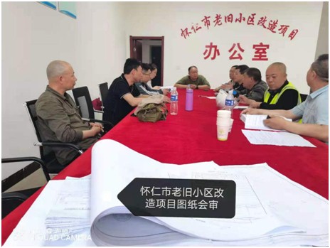 6月16日上午9点,怀仁市老旧小区改造项目由甲方吴玄德主任组织邀请设计院、监理公司和我施工方相关负责人,在甲方项目部办公室开展了图纸会审工作。由我方负责碧玉园小区标段现场负责人张虎全就图纸相关问题向设计院人员寻求解决办法。设计院人员就相关问题一一提出了解决方案。