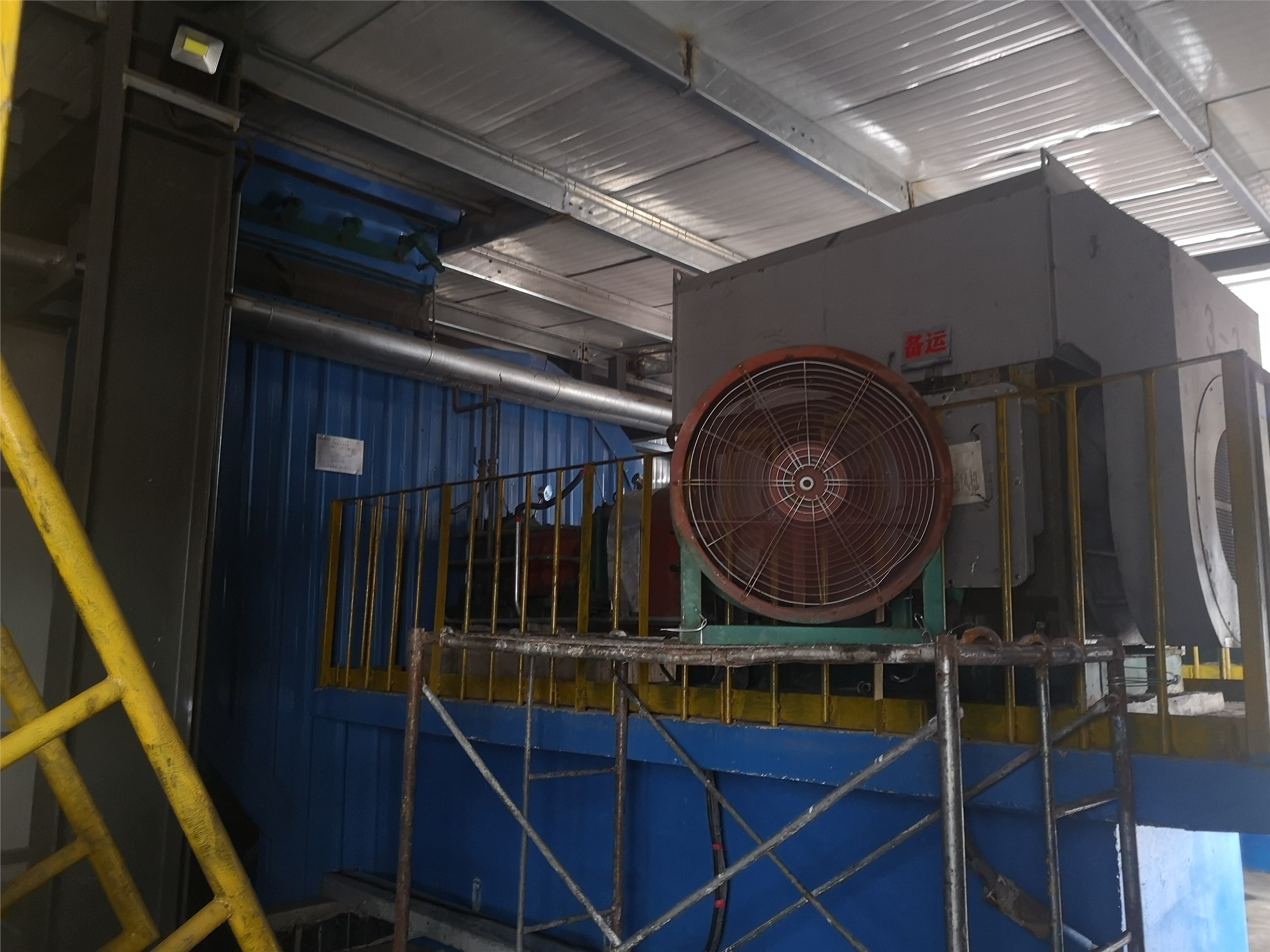 连续几天下来,1-1风机温度达到80多度,这样继续下去,1-1风机温度还将持续上涨。为了加快空气流通以达到温度目的,工人在1-1增压风机旁边加轴流风机,果不其然,加了轴流风机以后发现增压风机明显降温。