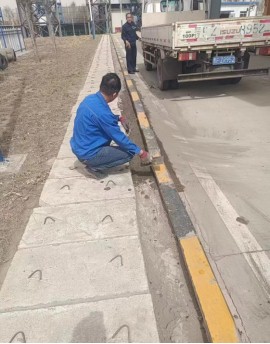 物业维修工孙世平接到通知后立即投入到破损路面的修补工作中。他首先把水泥、沙子、水按照一定的比例搅拌混合成混凝土,然后将破损路面水泥缝隙处的杂物清理出来,并把道沿石整理平整,最后将调配好的混凝土填充到路面上进行层面修复。为了提高工作效率,不影响场区人员与车辆正常通行,孙世平一早便开始做准备,2个小时后,路面修复如初,及时消除了安全隐患。